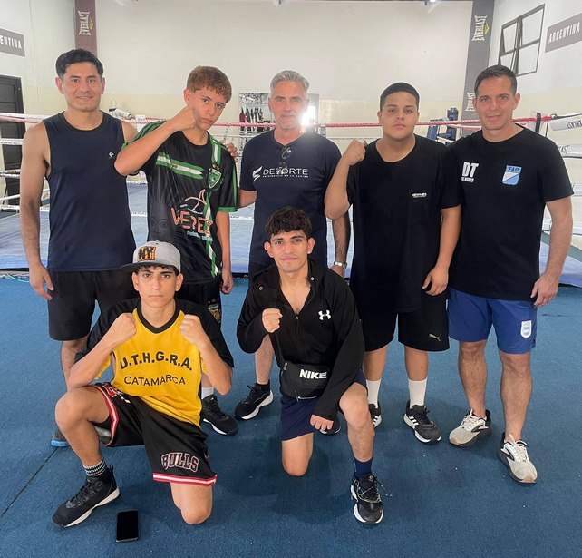 Los púgiles catamarqueños Benjamín Acosta, Aarón Mercado, y Román Morales, del gimnasio New Boxing, junto a Ulises Carrizo, del gym Maxi Brumec, finalizan este sábado 20 el campus de entrenamiento que realizan en el CENARD.